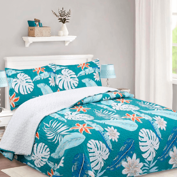 Cubrecama Quilt Sherpa 1.5 plazas - Verde Agua Hojas M909 El precio original era: $40.990.El precio actual es: $24.990.