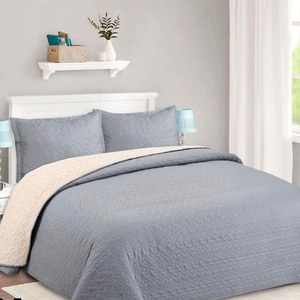 Cubrecama quilt sherpa 1.5 plazas, producto ideal para transformar tú dormitorio con estilo y elegancia.