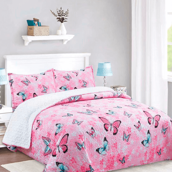 Cubrecama Quilt Sherpa 1.5 plazas - Rosa Mariposa M937 El precio original era: $40.990.El precio actual es: $24.990.