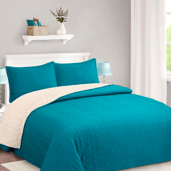 Cubrecama quilt sherpa 1.5 plazas, producto ideal para transformar tú dormitorio con estilo y elegancia.