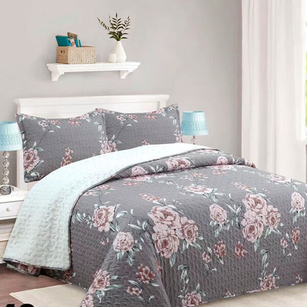 Cubrecama Quilt Sherpa King - Gris Rosas M948 El precio original era: $44.990.El precio actual es: $26.990.